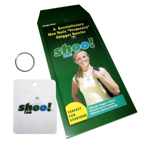 A natural bug repellant that is safe, non-toxic, green and will last for more than one day. each specific shoo! tag creates a "frequency barrier" designed to repel each insect by a specific frequency. the natural bio-energetic field created by an animal or person expands that specific frequency which disturbs the insects and keeps them away from the body. when used as instructed, the shoo! barrier protects up to 4 months. a revolutionary mosquito, chigger and tick barrier for people. perfect for the sports enthusiasts.